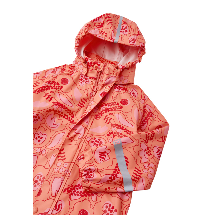A classic Reima® raincoat for kids, in fantastic colors and fresh stripes. The welded seams ensure that no water gets through, and the detachable hood protects little heads from rain – attached with snaps, it is safe when playing outdoors. On foggy or dark night the reflecting details are functional. The flexible kids’ rain jacket is made of safe certified material that contains no PVC. This material will not harden in frost, so the raincoat is perfect for winter use, too. Note that Reima® mid-layers can be attached to the jacket with the handy Play Layers® snap button system. Let it rain – your kid will enjoy outing!