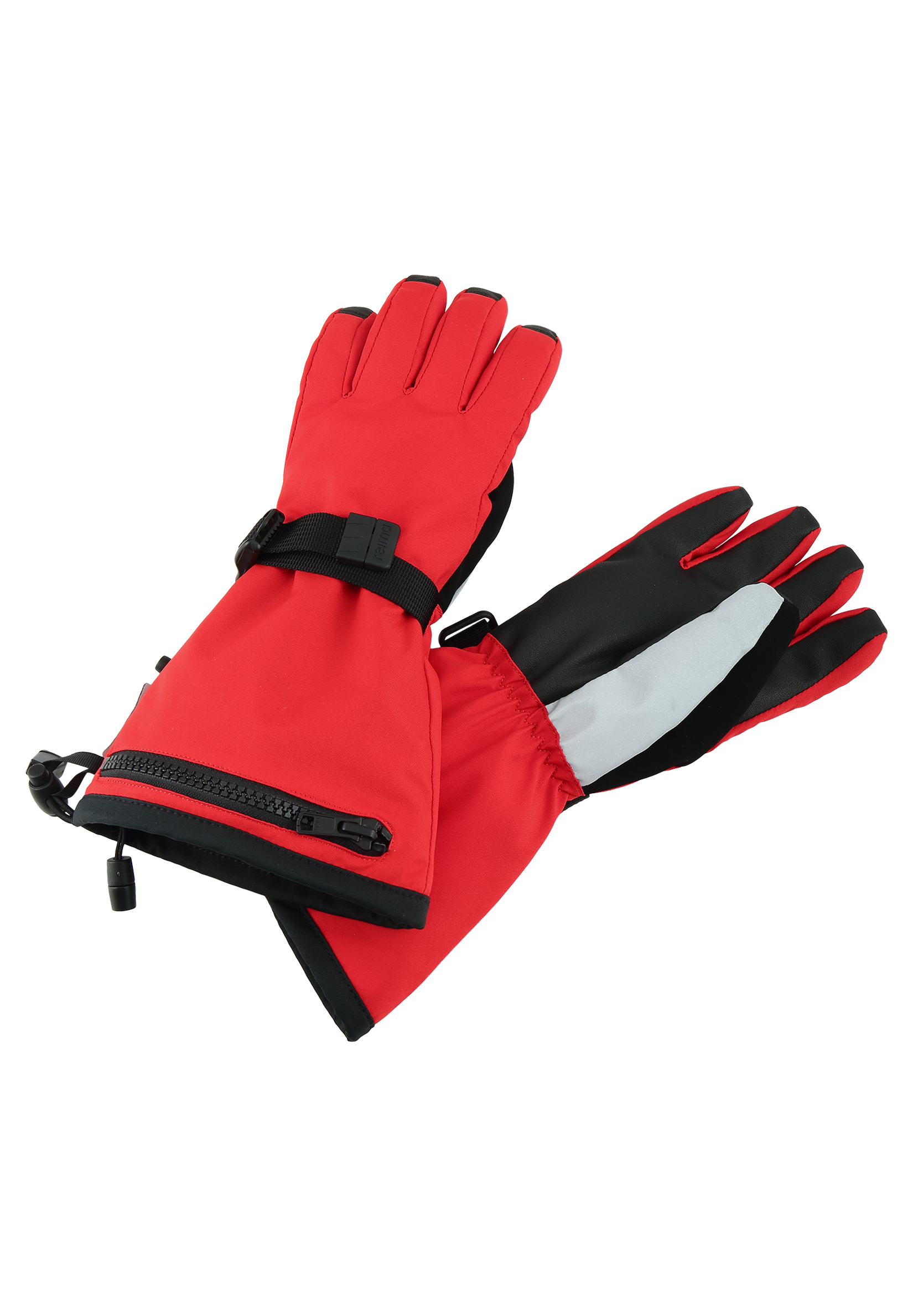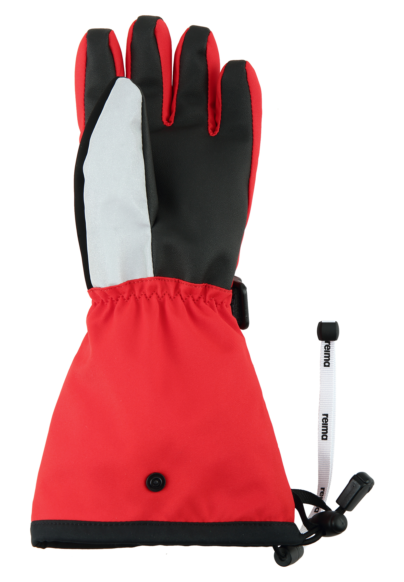 Reimatec ski gloves for kids. Warm and fully waterproof with reinforced palms and thumbs. Small pocket for a ski pass.