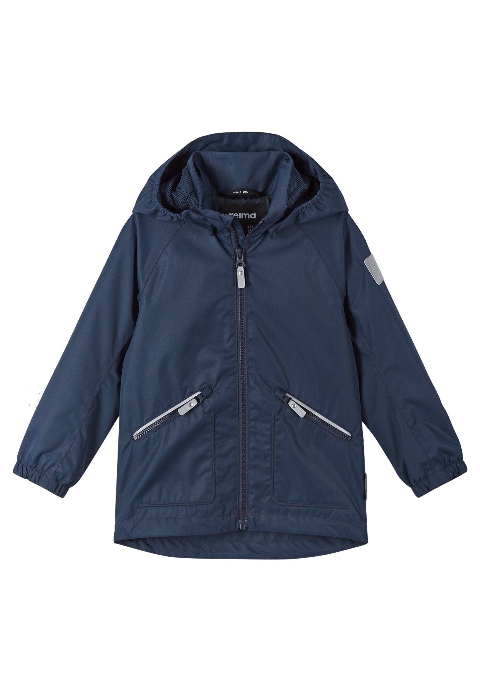 This modern Reimatec kids’ spring jacket is made from a waterproof and dirt-repellent material. All its seams are sealed to ward off wind and wetness. The polyester lining feels smooth against skin and the hem can be adjusted for a better fit. It comes in a casual style with a straight fit and zip pockets.