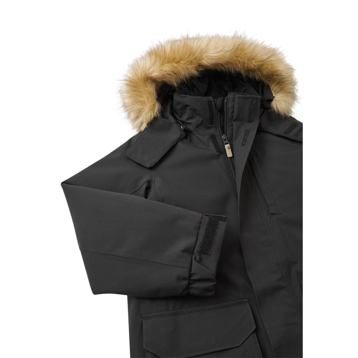 • Safe, detachable and adjustable hood with detachable faux fur trim