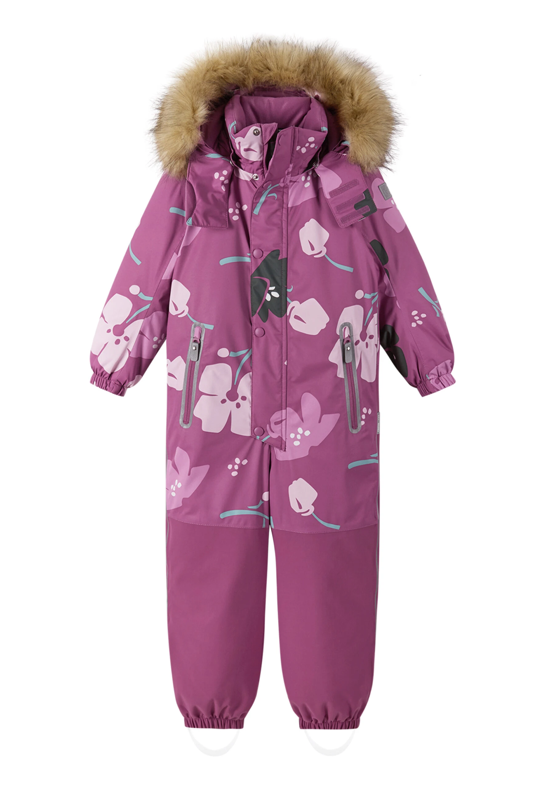 This winter snowsuit is a super warm, playful one-piece for kids who love to have fun outside. It’s ideal for the ski fields, when making a snowman, or during a day at the rink skating the ice. Its upper is made from dirt resistant, waterproof fabric that showcases stretch and easy movement. The durable trousers deliver a comfortable fit. Sealed seams protect from rain, hail, and snow while extra-snug padding guarantees warmth. The detachable hood boasts a faux fur trim that children simply love! What makes the Kipina snowsuit so endearing is all its extra details — an adjustable waist, elasticated cuffs, secure zip pockets, and detachable foot loops.
